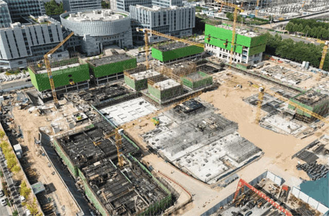 五月的城發(fā)·高新生物經(jīng)濟產(chǎn)業(yè)園,塔吊繁忙運轉、機械設備轟鳴不斷,工人們有條不紊地進行施工作業(yè),項目建設現(xiàn)場到處一派熱火朝天的繁忙景象。其中,項目一期的主樓工程基本完成,室外配套管網(wǎng)、景觀正在施工中;項目三期的土方、樁基已完成,正在交叉推進正負零和主體施工,部分樓棟已施工至六層。